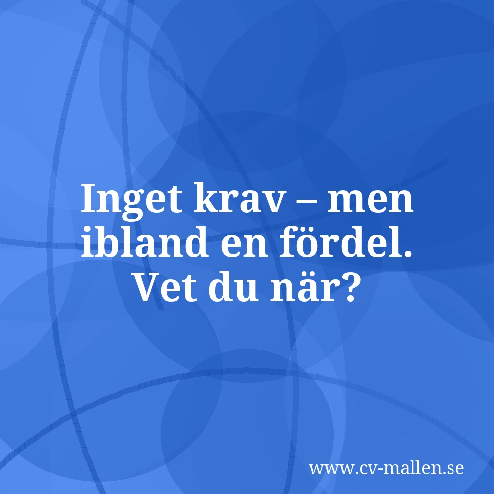 - Ingen lag eller norm i Sverige kräver att du har bild i CV:t.