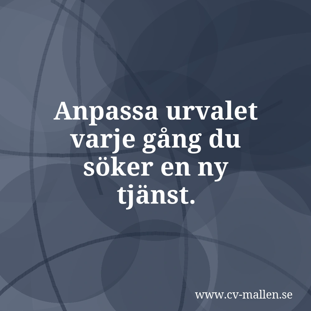 Ja, det ger märkbar skillnad. Justera ordningen och urvalet så att de färdigheter arbetsgivaren betonar i annonsen hamnar högst upp, och plocka bort det som saknar relevans för just den tjänsten.